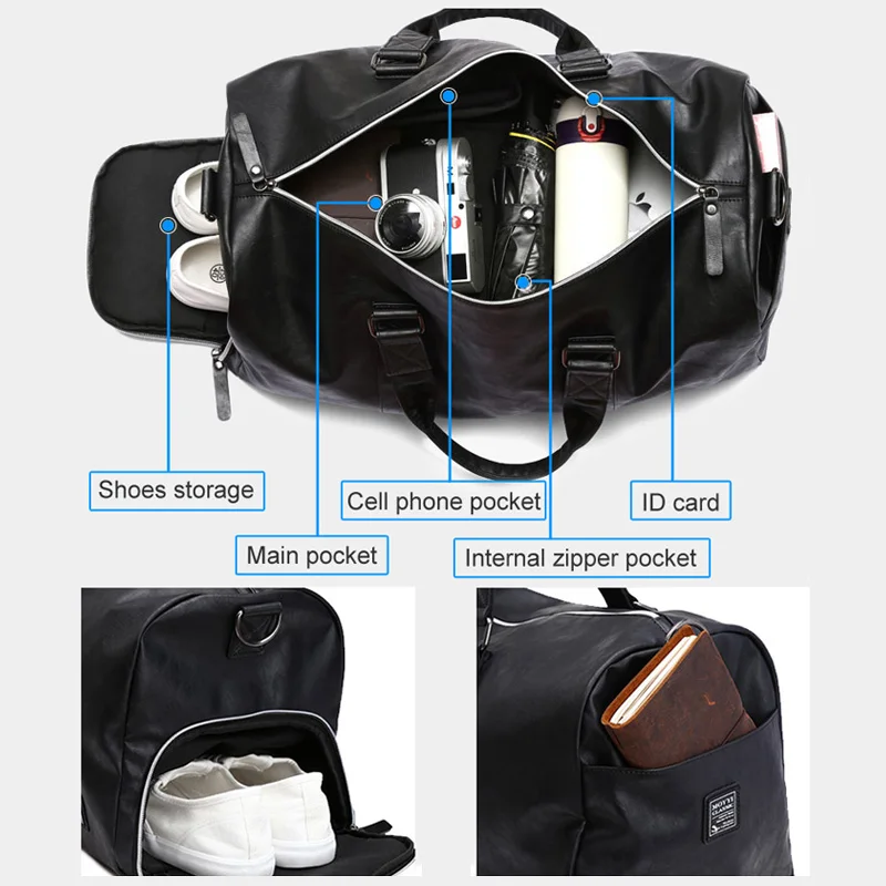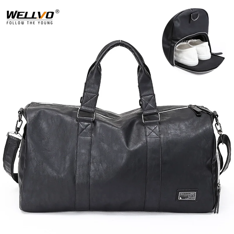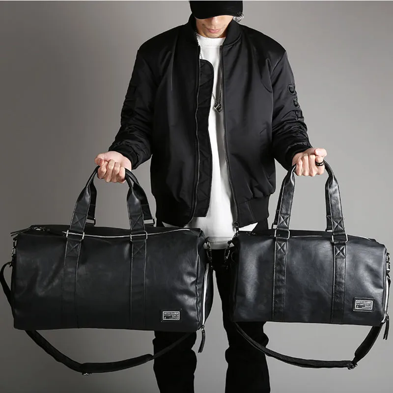 Business Men PU Leather Travel Bags 2019 Black Hand Luggage Short Trip Suitcase Portable Duffel Big